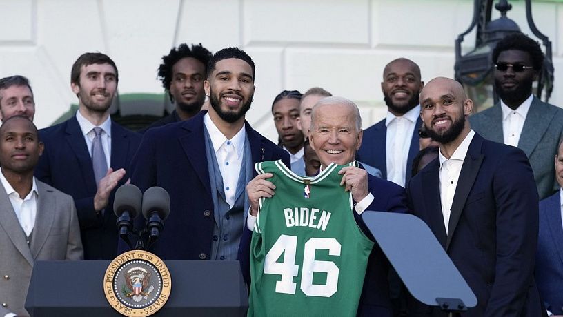 The Celtics players gifted Biden a personalized jersey with the number 46. As part of the traditional NBA champions’ visit to the White House, which dates back to 1963 when a team met with President John F. Kennedy, Biden took them on a tour of the Oval Office.