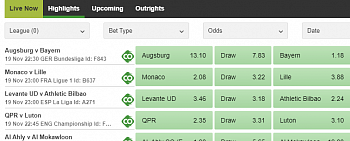 Betting odds appear as numbers underneath or alongside all the probable outcomes in each match.