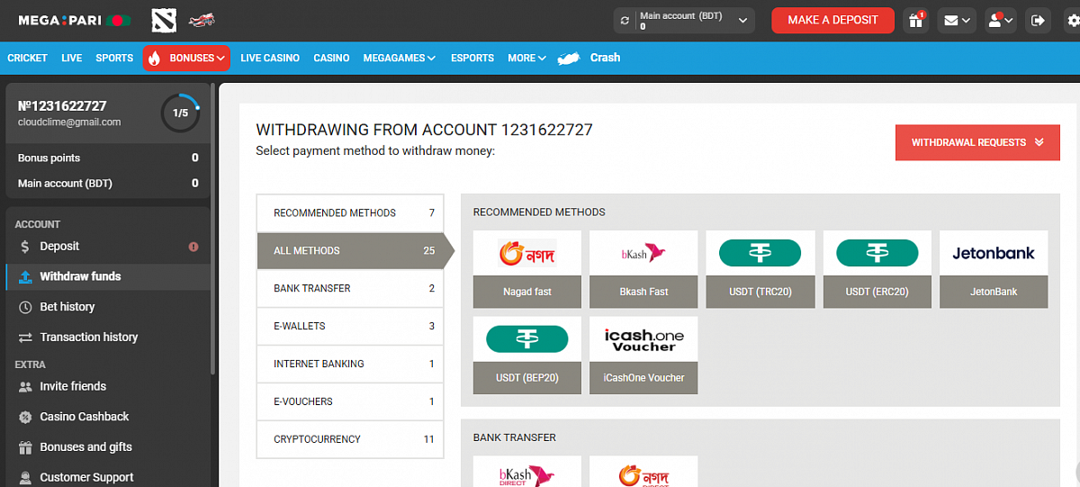- Only use verified withdrawal methods if it is a bonus that can be cashed out;