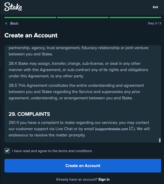 - To access exclusive deals, enter a Stake bonus code upon registration, if available;