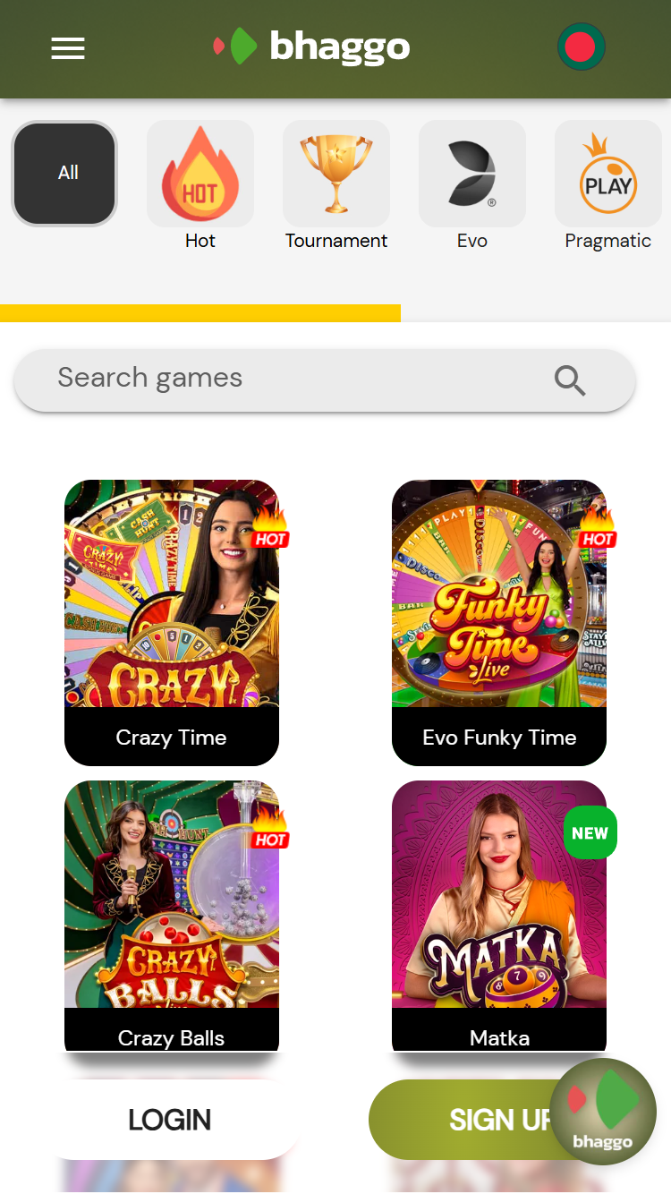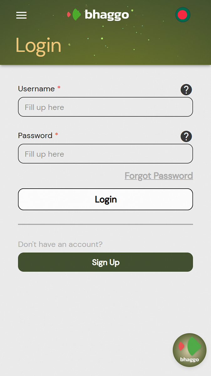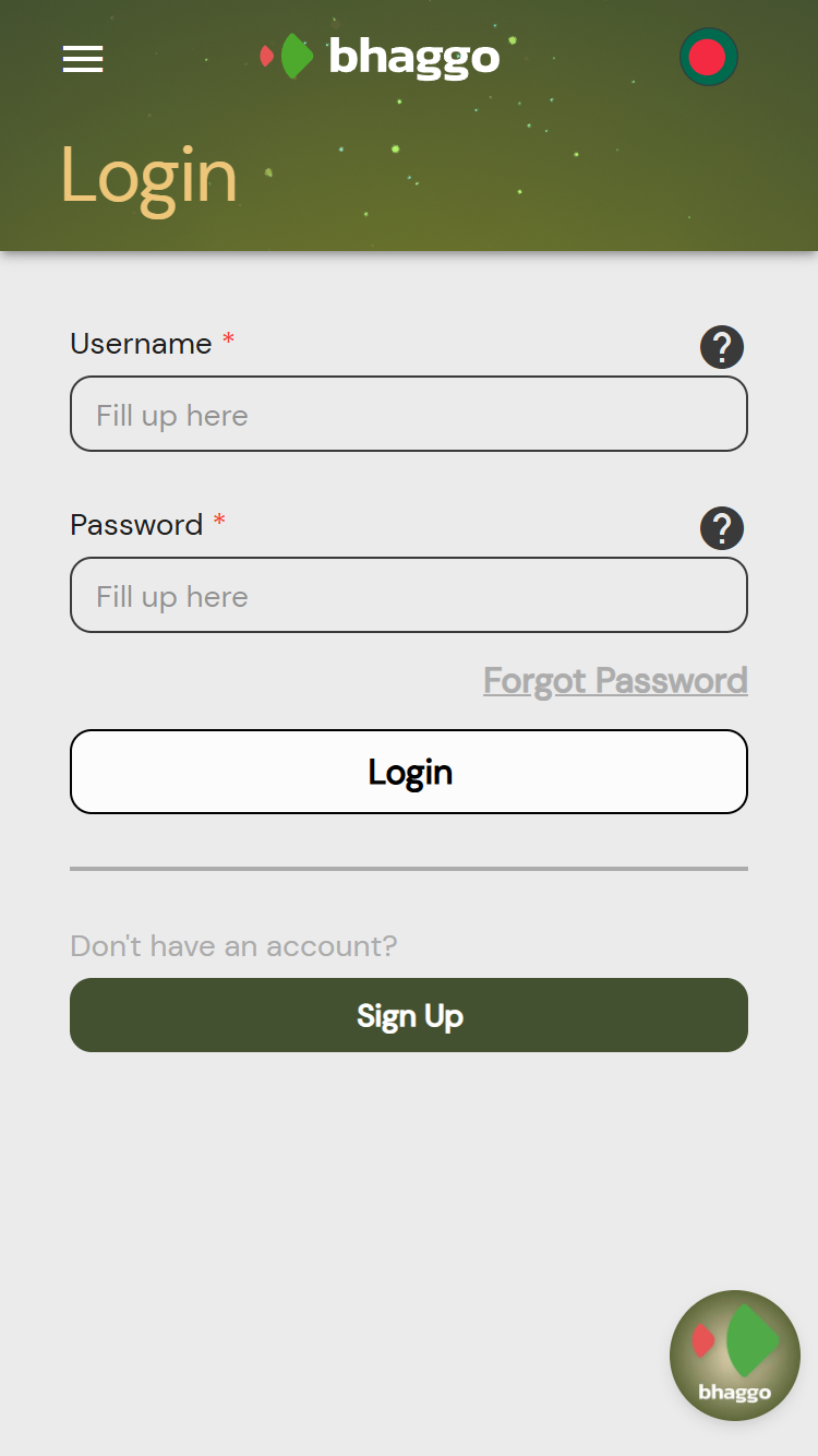 - Start by opening the Bhaggo website on your browser. Otherwise, if you are a mobile user, launch the Bhaggo app on your Android or iOS device.