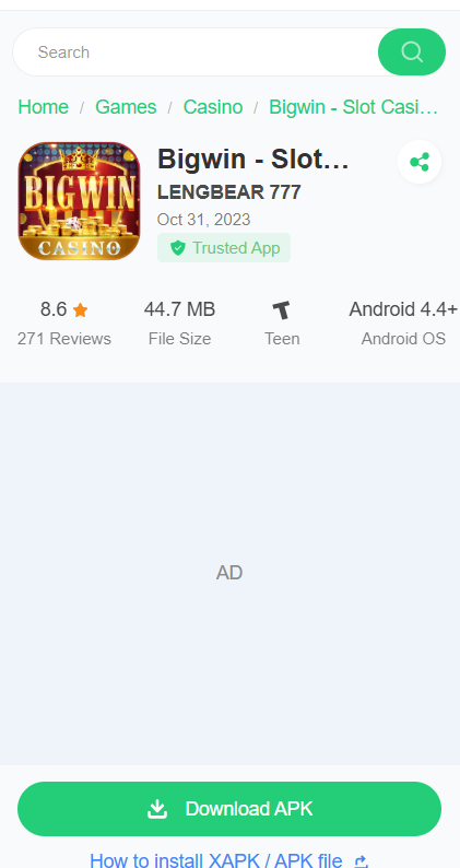 First, go to the Google Play Store or Google Browser. Search for the Big Win casino app on the Play Store or on the Google homepage;