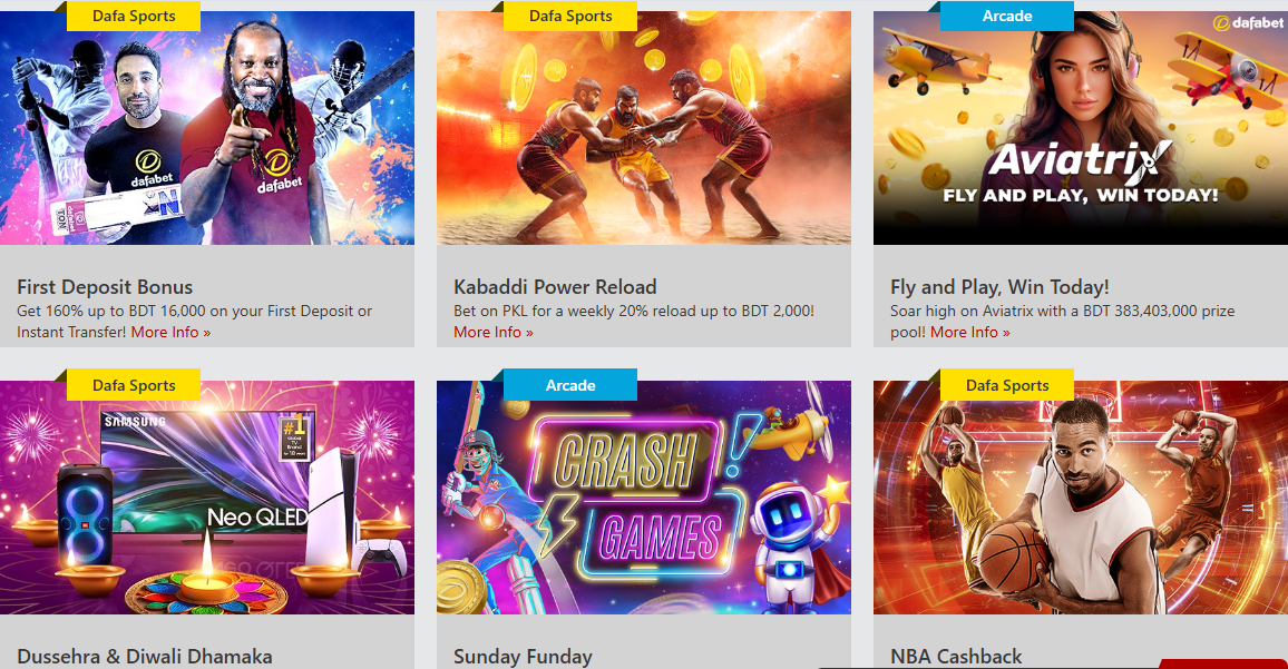 Join us as we explore Dafabet and discover easy payment options and their various casino and sports betting markets with top-notch live betting features, including crash games, virtuals, arcades, etc. Our Dafabet review covers everything from payment convenience to odds competitiveness, customer support responsiveness, and any other Dafabet alternative link. You will be driven through Dafabet with a 150% Welcome Bonus of up to BDT 150,000, a Maximum Cricket 10% Cash Back of up to 20,000 BDT, NBA Cashback, Sunday Funday and many other opportunites associated with Dafabet.