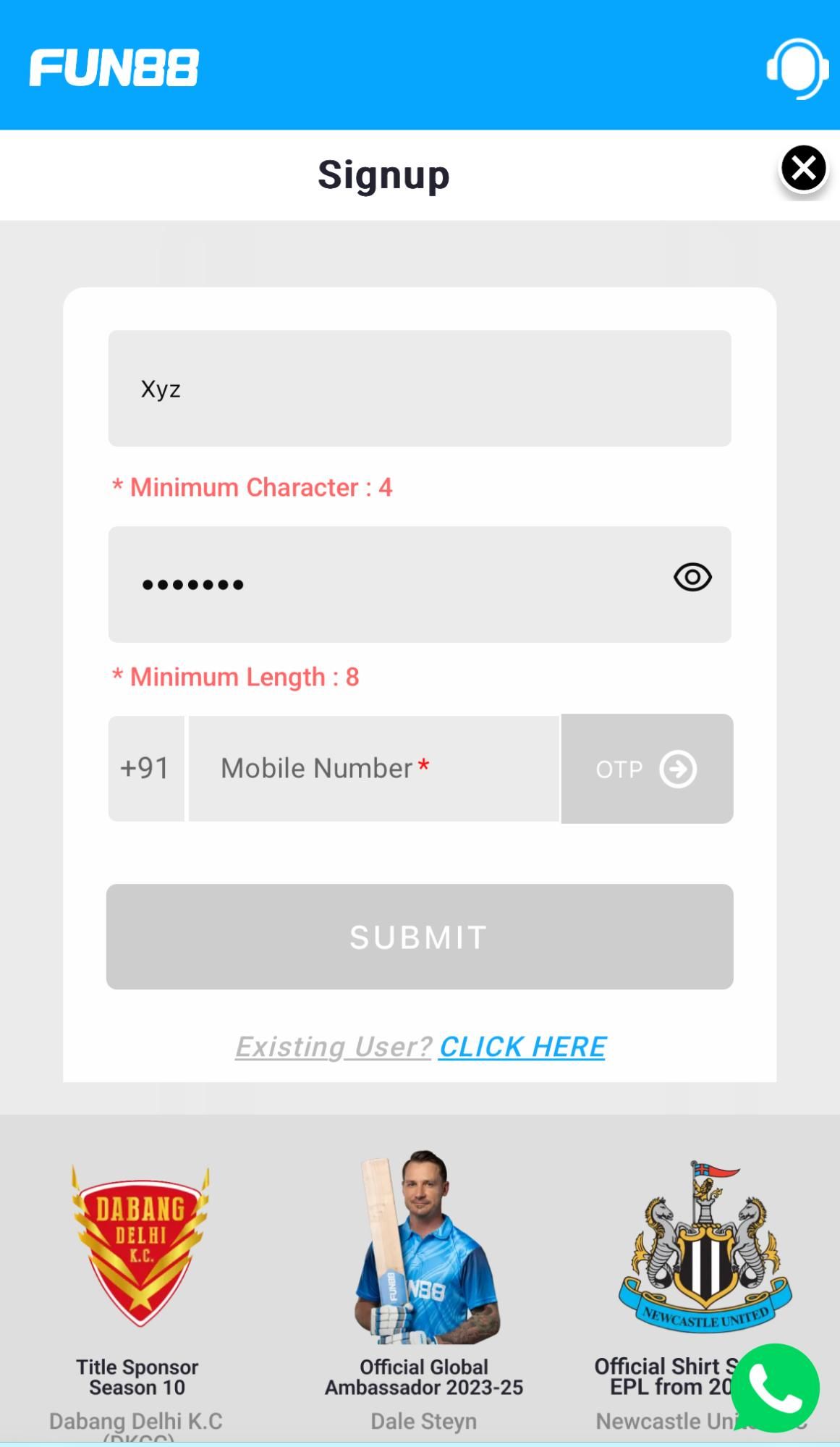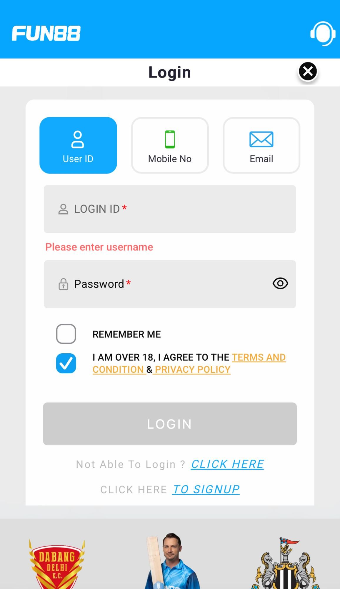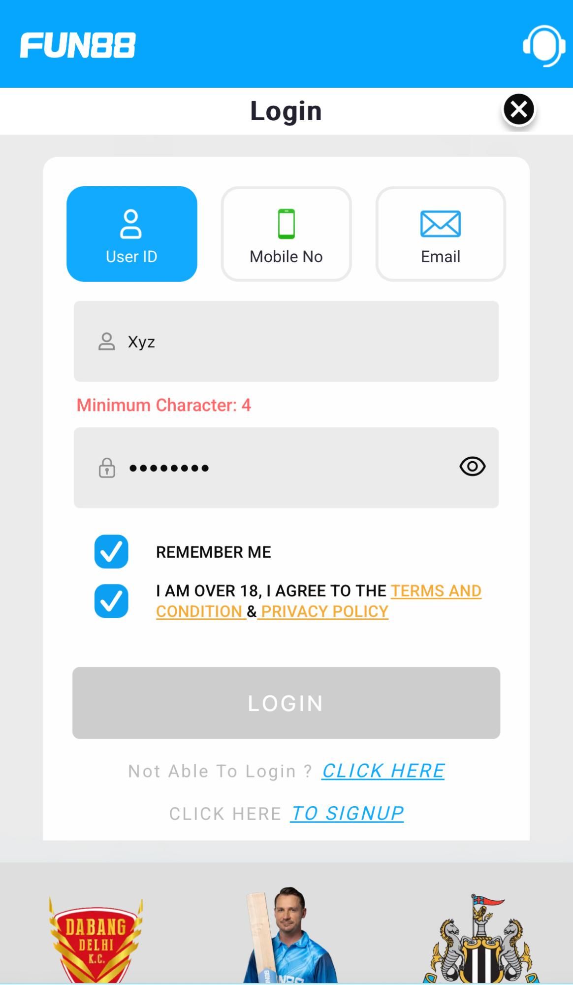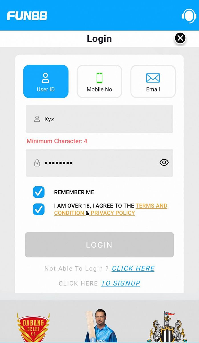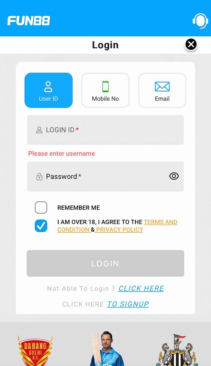 - Open the Fun88 app or visit the Fun88 mobile site in your phone browser;