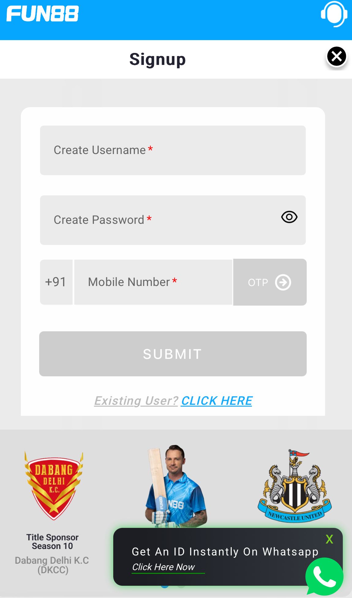 - Open the Fun88 registration page and complete your account details;