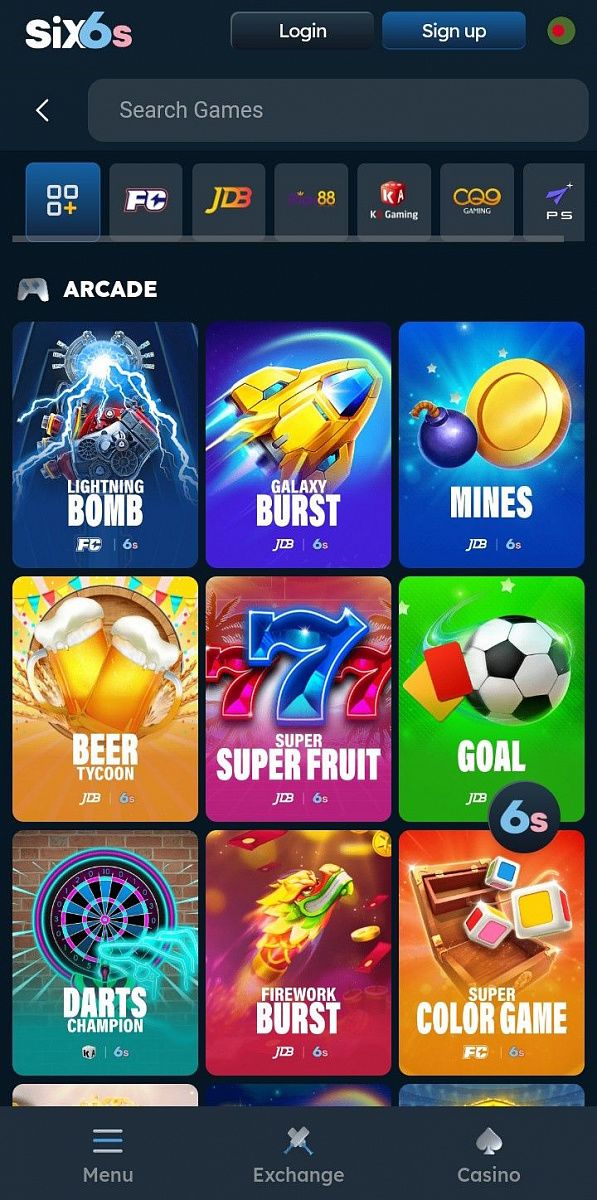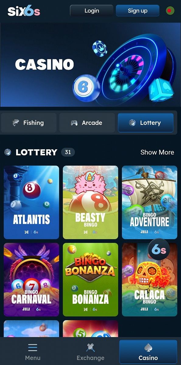 Much more, there are TV Games, live casinos, jackpots, lotteries, arcades, crash games, fishing games, instant games, and several others available upon Six6s app download for Android. And, these games are provided by top software groups like Playtech, Pragmatic Play, Play’n GO, NetEnt, JILI, Fa Chai, and more.