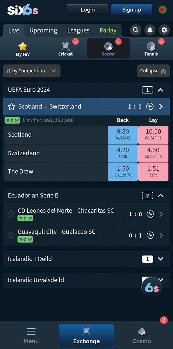 Six6s app does not visibly have any eSports section on it. However, you can enjoy many other interesting betting options such as I-Sports, Virtual sports, kabbadi, horse racing, and Powereleven.