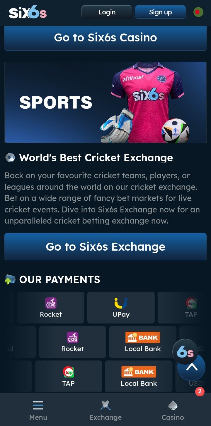 New Six6s customers can enjoy offers that begin with the 100% Sports Bonus on their initial deposit. With 500 BDT or more deposited into your account you'll receive a matching deposit bonus up to 10000 BDT. Wager all of this 18x on sports with 1.3 odds or more to be able to make withdrawals if you win. Other Six6s app promos include: