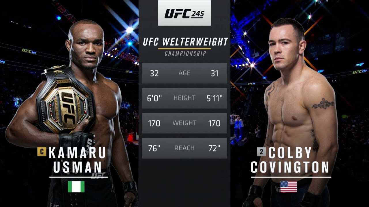 Usman made his first title defense against his longtime opponent, Colby Covington on December 14, 2019, at UFC 245. Everyone expected the fighters to work in parterre, but almost the entire fight went in the stance. At the end of the fifth round, a minute into the fight, "The Nigerian Nightmare" knocked Colby down twice before finishing his opponent. This technical knockout was the latest finish in the history of the organization's semi-middle weight division.