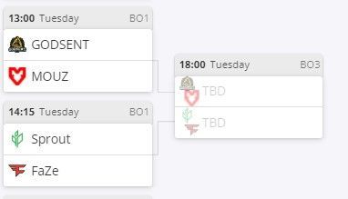 The tournament is actually divided into four brackets. In the first phase, the teams will meet in a bo1 format. Then each match will be played in a bo3 system. The shortest way is to win two in a row or, more simply, to win in your bracket. You can check out the initial distribution of the teams below.