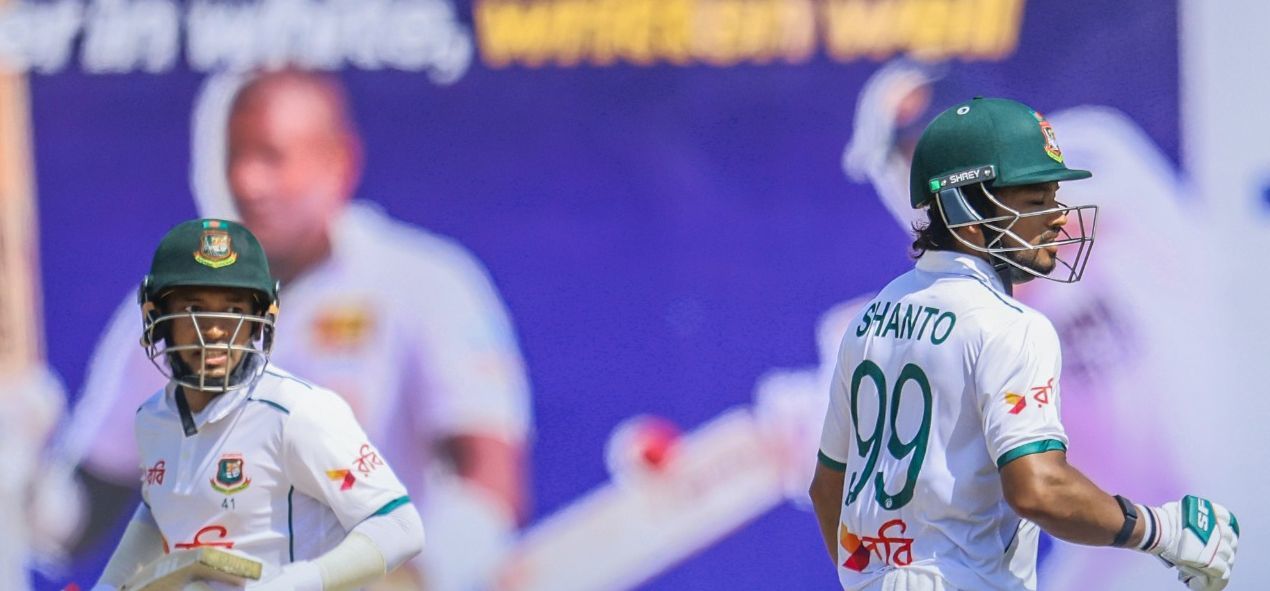 Brief Scores (Day 1): Bangladesh 292/3 in 90 overs (Najmul Hossain Shanto 136* off 221 balls, Mushfiqur Rahim 105* off 172; Tharindu Ratnayake 2/124) vs Sri Lanka.