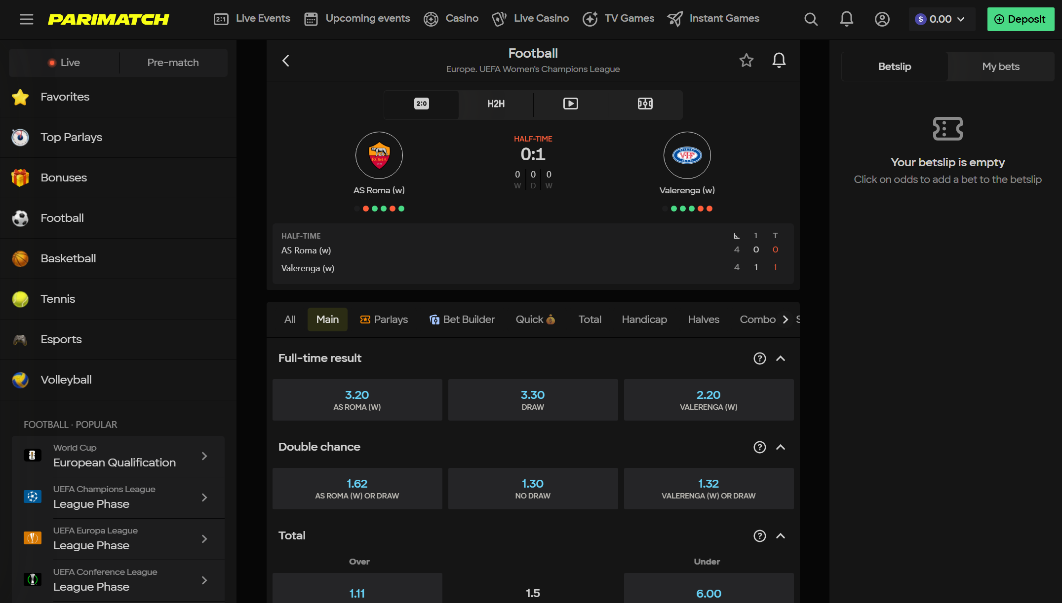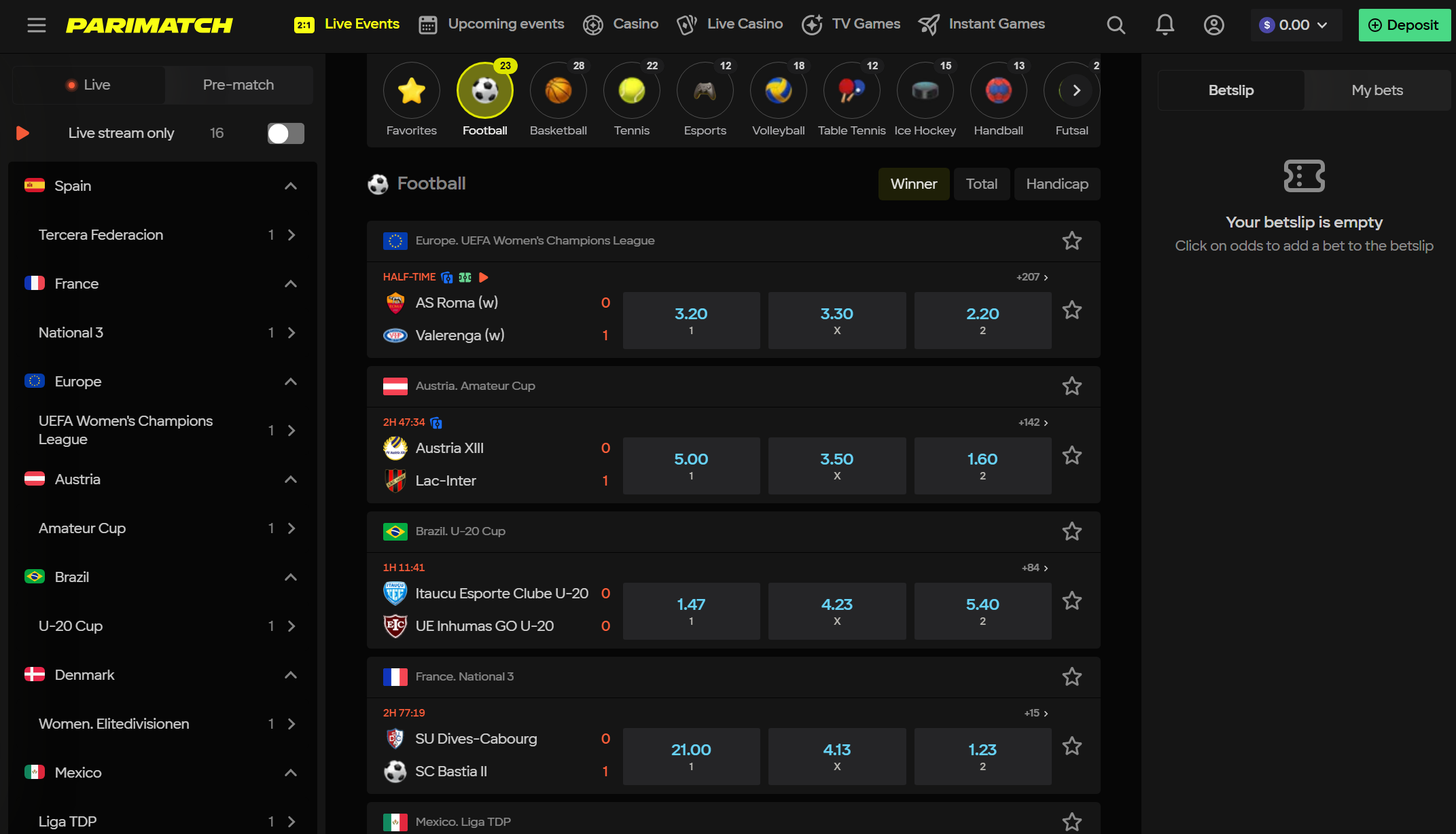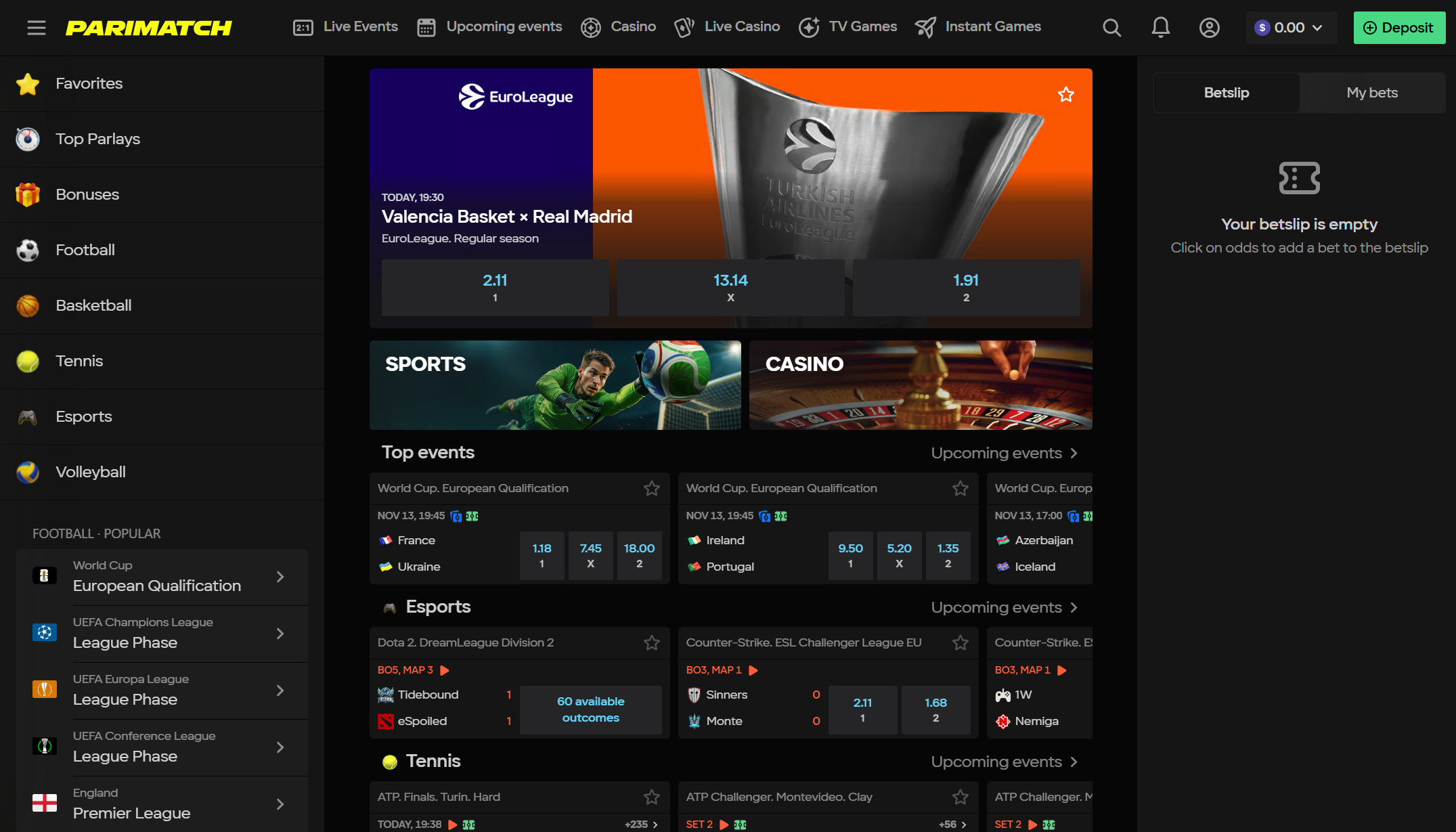 Sem dúvidas, o futebol é um dos principais atrativos na Parimatch. Com isso, a plataforma possui com cobertura extensa das ligas mais renomadas, como a Premier League, La Liga e também o Brasileirão.