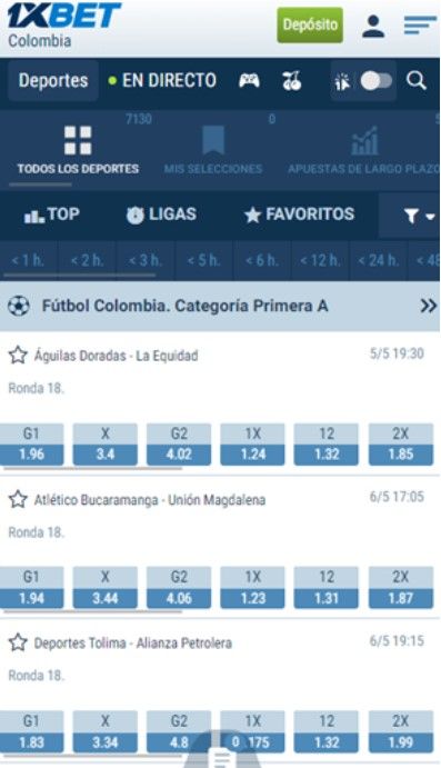 Una vez iniciada la sesión, se procede a buscar en 1xBet Colombia juegos deportivos dónde se deseen realizar apuestas;