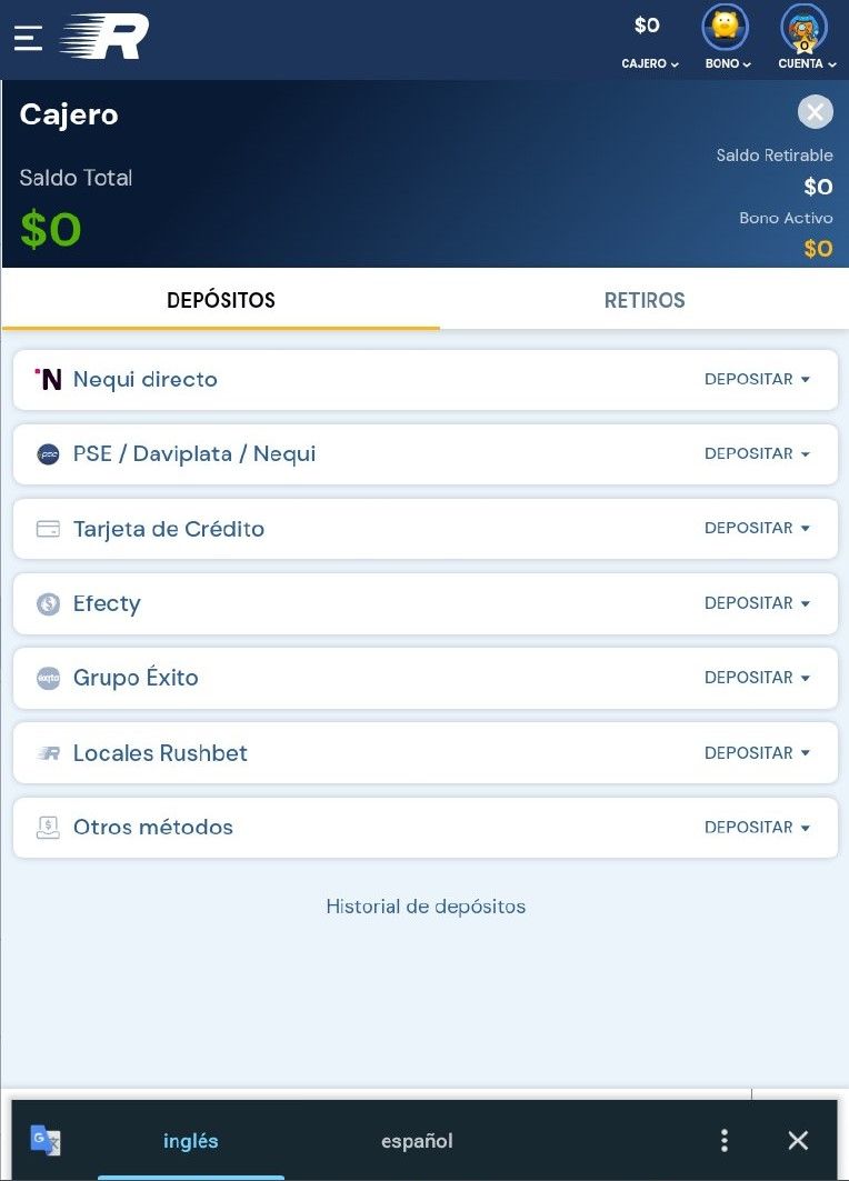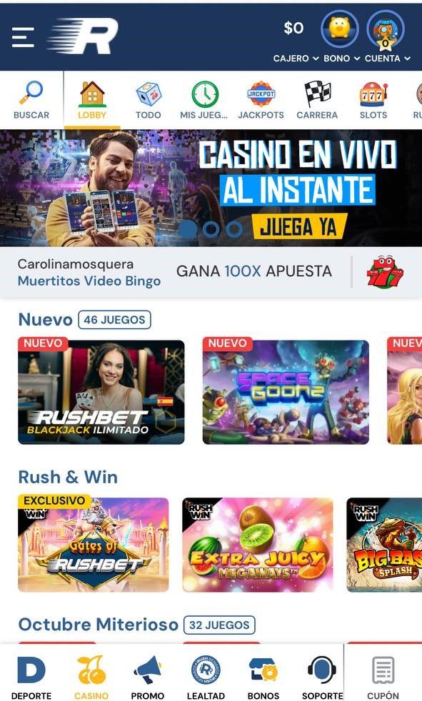 El juego Rushber Aviator tampoco está disponible en la aplicación, por el momento. De todos modos, se puede aprovechar la app y jugar juegos casino y de deporte.