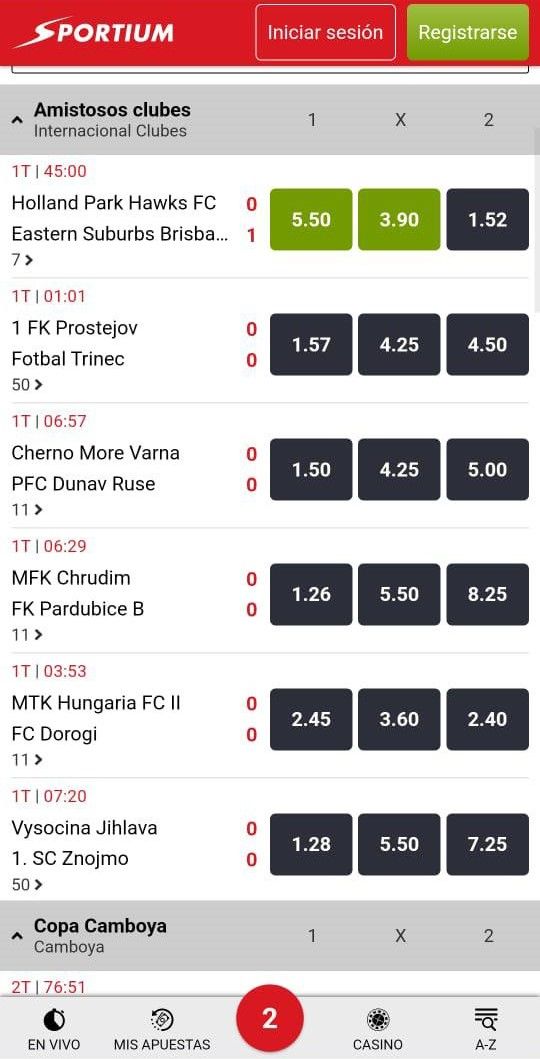 Para poder acceder a la sección de apuestas deportivas, debes ingresar al sitio web de Sportium online Colombia y Presionar el botón "Apuestas deportivas" del menú superior, ahí tendrás la opción de poder elegir el deporte que más te guste, Fútbol, Básquet, MMA, tenis y torneos, como por ejemplo la liga, copa libertadores, torneos de Asia y África, NBA, super bowl, entre otros. Tienes disponible un catálogo enorme de mercado de apuestas en el que podrás apostar. Por el momento no cuenta con un servicio de streaming, pero creo que sería un punto a favor que puedan agregar esto, para poder seguir los eventos y partidos en vivo y directo.