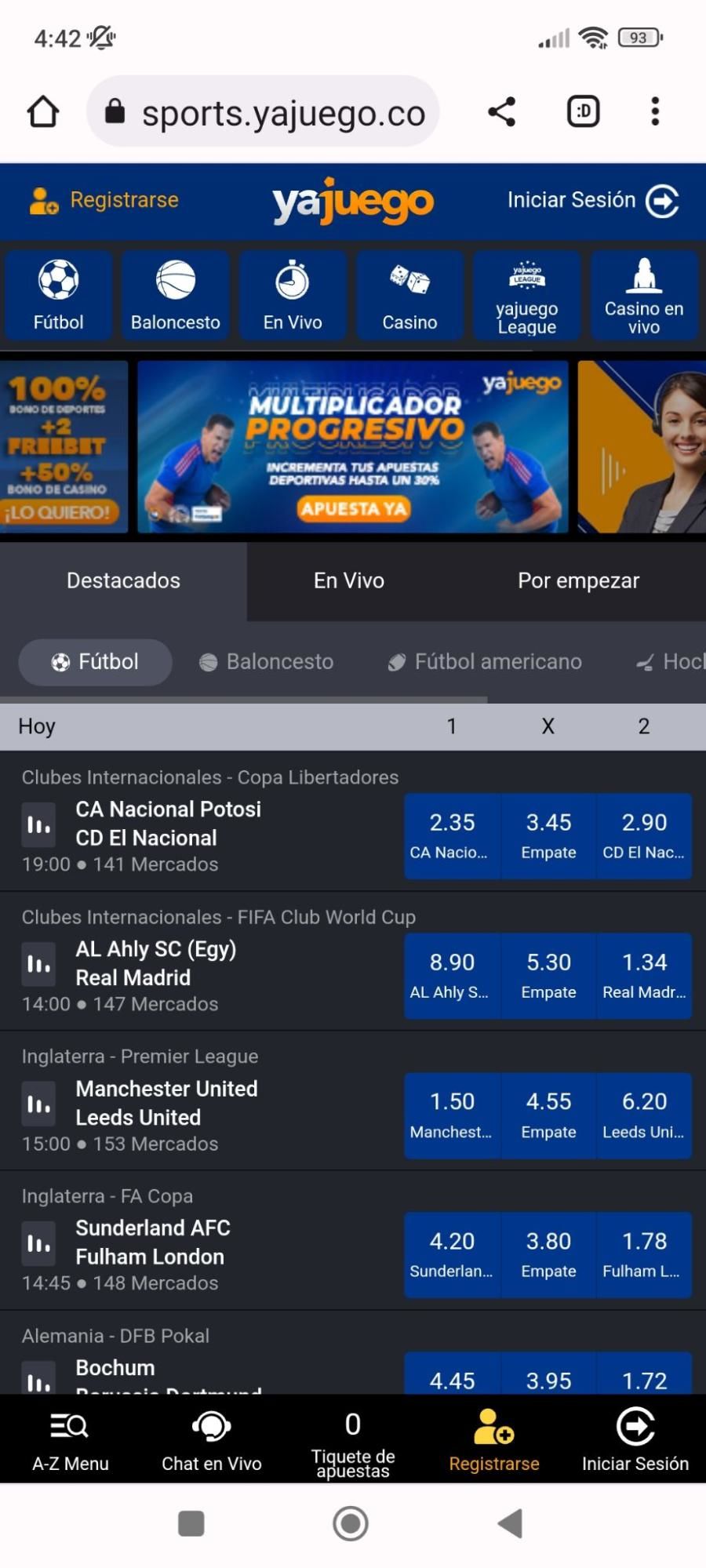 YaJuego es una de las casas de apuestas deportivas colombianas más populares. Con más de 25 opciones de eventos deportivos para apostar y diferentes opciones de juegos en casino online, la podemos considerar como una de las plataformas más completas a la hora de realizar apuestas deportivas. Es una página web fácil de utilizar, con una interfaz bastante amigable con el usuario.