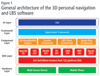 No additional hardware is added to the Nokia Series 60 (S60) smartphone platform to achieve the 3D visualizations or other functions in the software. Figure 1 shows the general architecture of the software.
