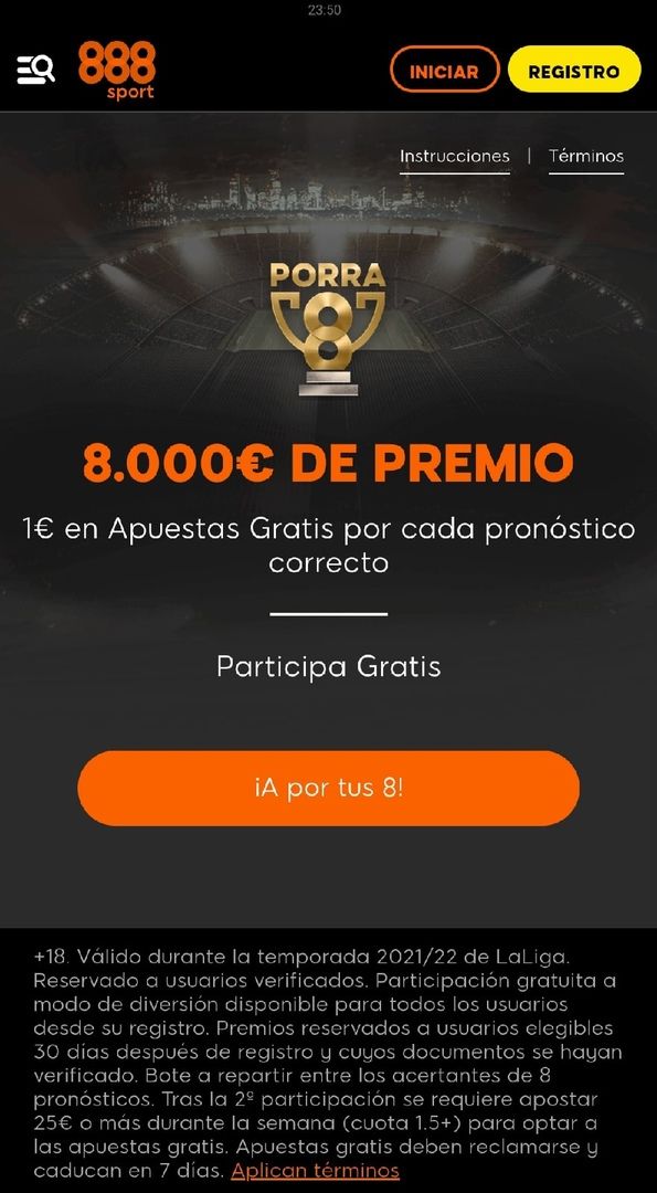 888 Sport es un sitio web de la empresa 888 Holdings plc, que se caracteriza por ofrecer a sus clientes apuestas deportivas en diferentes disciplinas. En la actualidad opera en 57 países aproximadamente, y además se ha consolidado como una de los más prestigiosos en su sector.