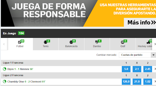 En la sección “En juego” Betfair muestra todos los datos de los eventos deportivos en los que se pueden apostar que están sucediendo en ese instante. En esta sección se pueden encontrar juegos como: