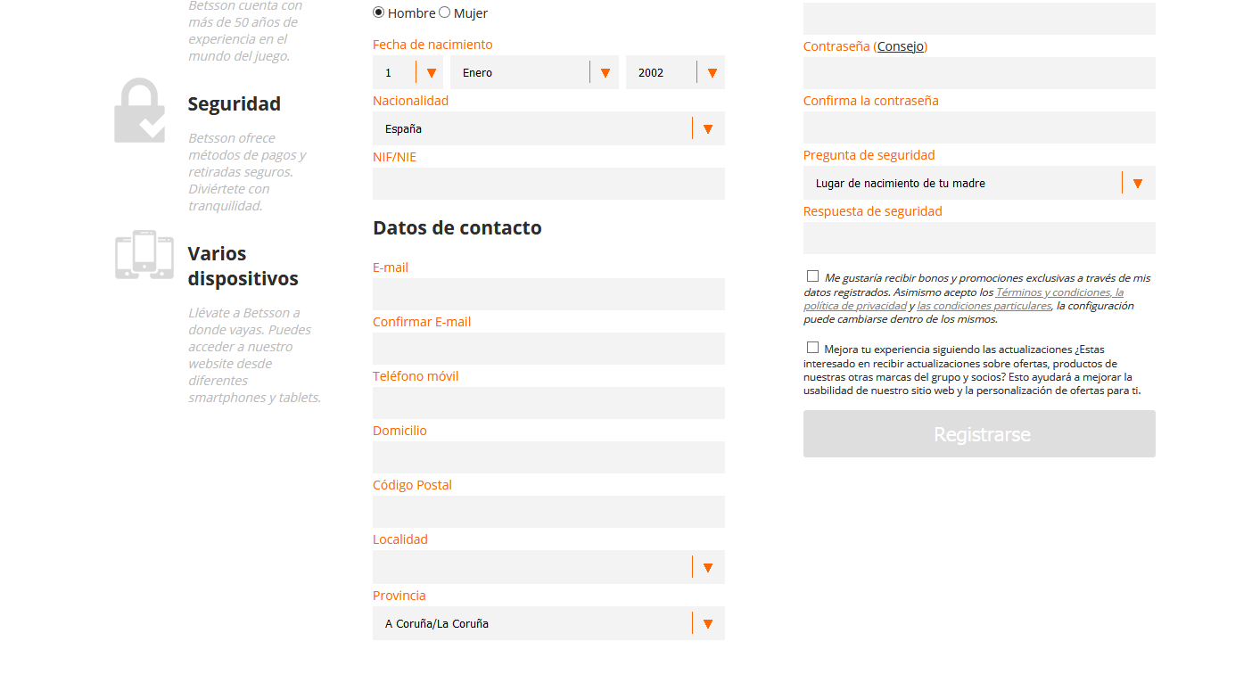 Por eso te recomendamos encarecidamente que utilices siempre tus datos verdaderos al momento del registro en Betsson u otra plataforma.