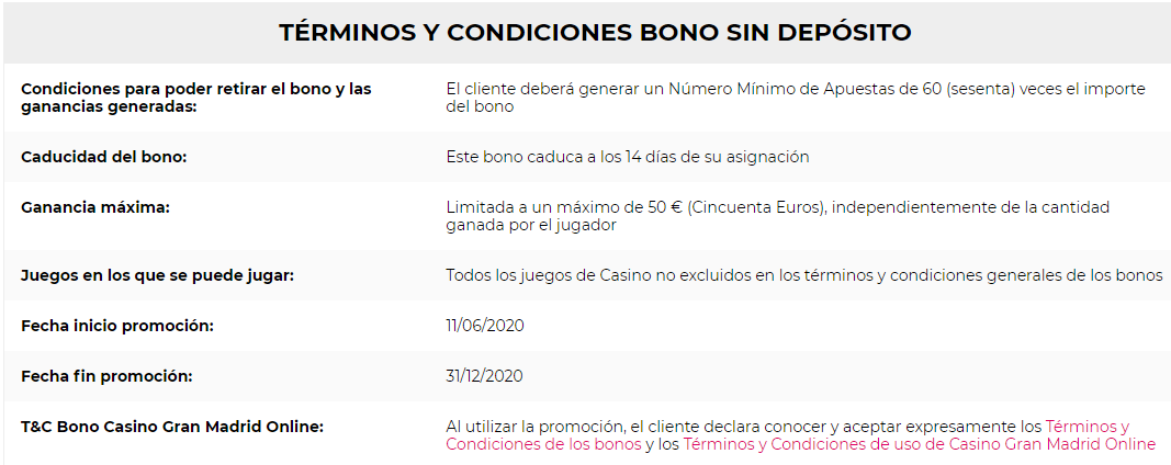 Registrarse en de Grand Madrid OnlineUna vez se realice en registro, es indispensable aceptar los términos y condiciones del uso del casino, los cuales también serán enviados a través del correo electrónico suministrado o también puede ser consultado en la cuenta personal. Como es de esperarse el documento es bastante amplio, pero en la sección de registro, se explican algunas generalidades y condiciones de validación de seguridad para poder completar el registro, condiciones para el depósito y retiro de dinero, cumplimiento de la normatividad legal de España, y suspensión y bloqueo de la cuenta. El documento completo se puede leer en el siguiente enlace: https://www.casinogranmadridonline.es/ayuda/terminos-y-condiciones/uso-cgm-online
