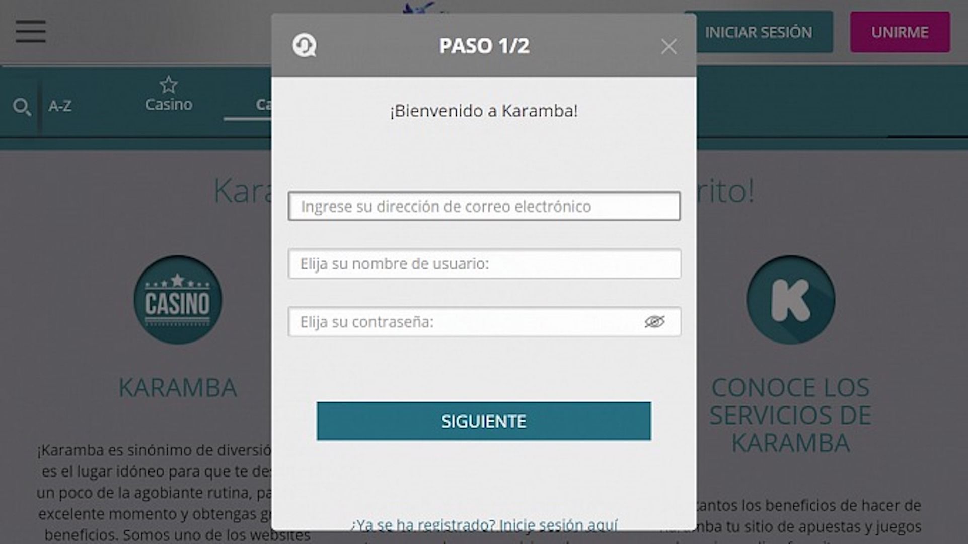 El proceso de registro en la casa de apuestas Karamba es bastante sencillo, puedes ingresar en la página web seguir los pasos a continuación.