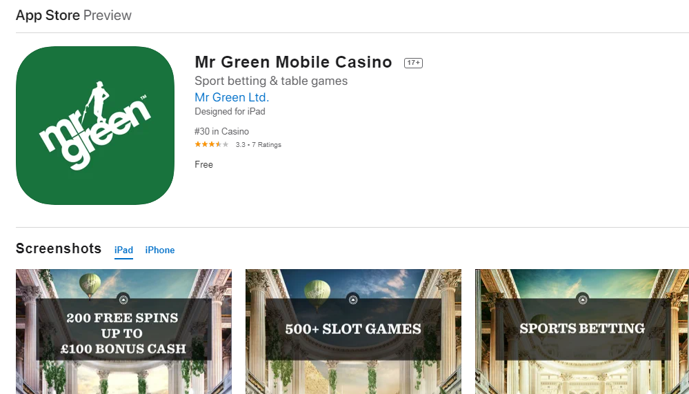 - Busca Mr. Green en la App Store, cabe destacar que también puedes encontrar la app oficial dentro de plataforma.