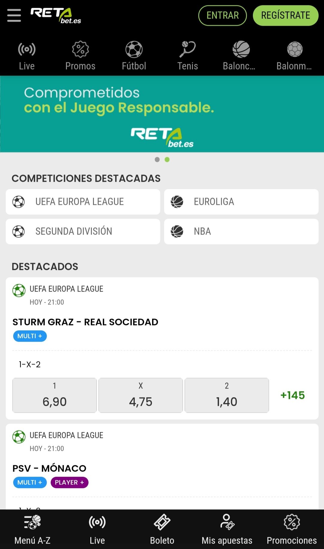 Además te ofrece la opción de seguir tu emoción por el deporte a través de tu dispositivo móvil mediante la app RETAbet.es, disponible para Android y App Store, con licencia otorgada por la DGOJ para poder ofrecer apuestas a nivel nacional.