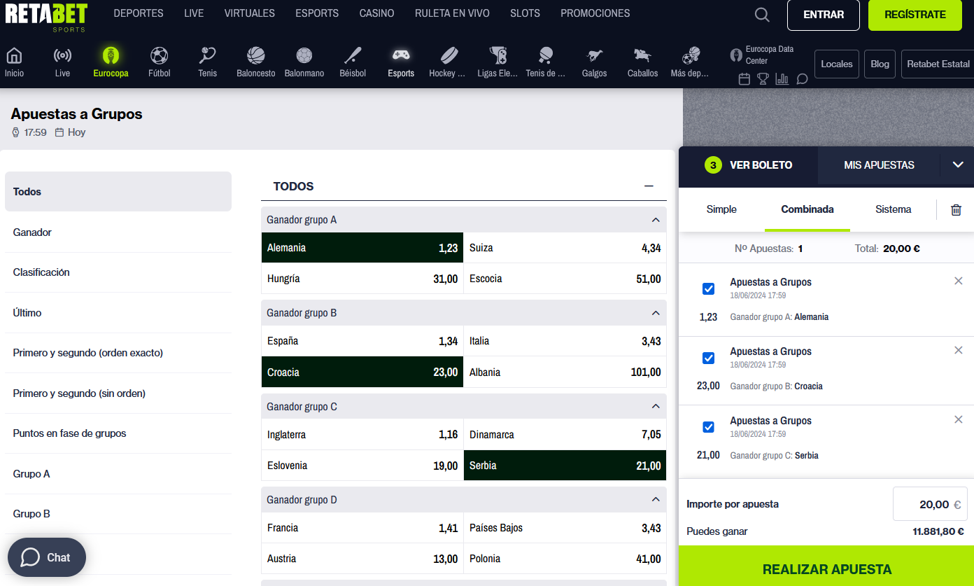 Imagen RETAbet España en el menú deportes/apuestas a grupos