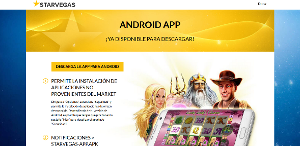 Este sitio de apuestas online demuestra que es uno de los más modernos y completos en el mercado, ya que también cuentan con una aplicación móvil de su sitio web. Ahora cualquier jugador puede aprovechar sus servicios desde cualquier lugar y con mucha más comodidad. Destacamos que la aplicación está disponible para dispositivos Android y iOS. Si tu dispositivo es Android sigue estos pasos para conseguir el archivo de la aplicación móvil de StarVegas.