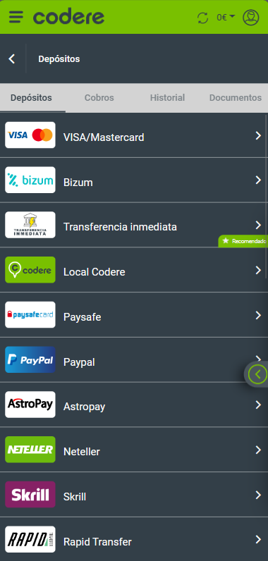 Otra característica que consideramos importante, es que las mejores app apuestas deben ser atractivas y fáciles de usar. Para ello debe estar organizada de manera que se puedan acceder fácilmente a todas las funciones, así como tener indicaciones claras sobre cómo hacer las apuestas y retirar el saldo, por ejemplo, la app de Codere es la más amigable con el usuario para hacer depósitos y retiros.
