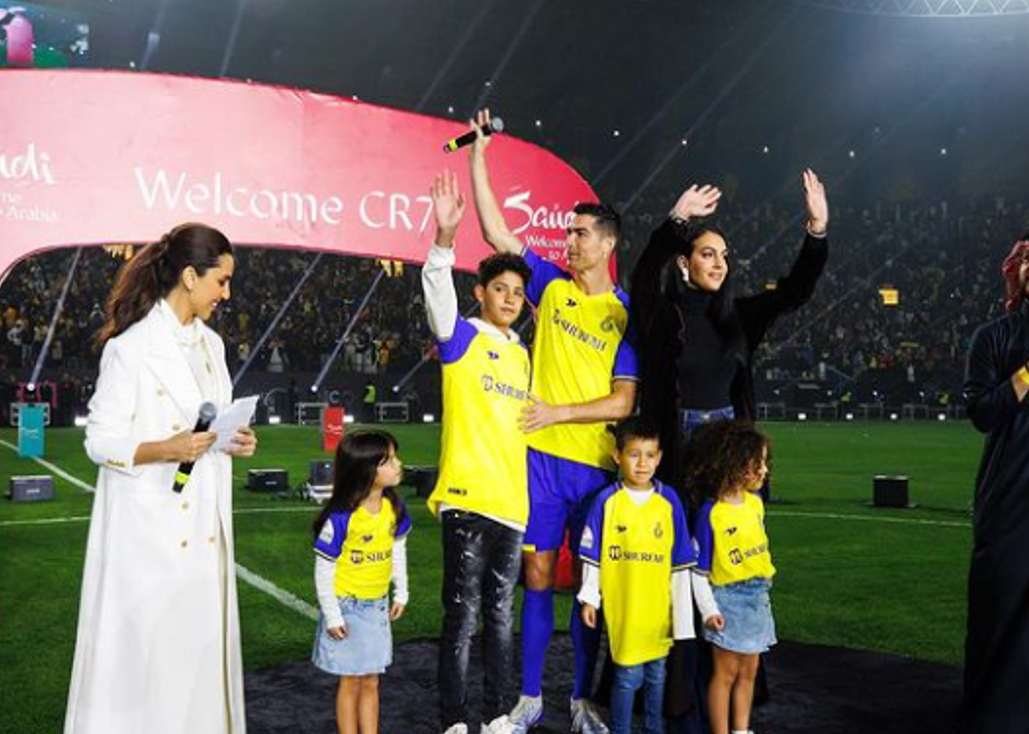 Tras la cálida bienvenida del club y los saudís a Ronaldo y su familia, el CR7 no dudo en compartir con sus más de 520 millones de seguidores en Instagram, las imágenes de su presentación desde el estadio Mrsool Park, casa principal del club: