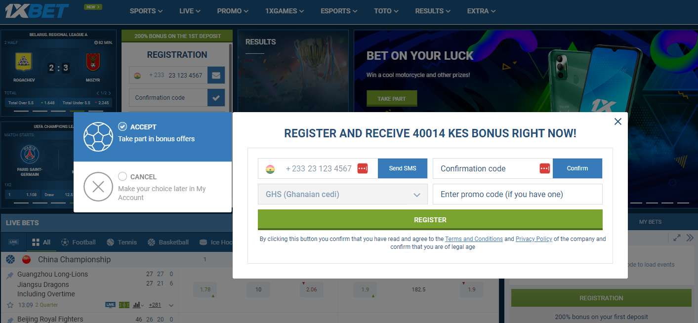 Creating an account is straightforward, as discussed above. Just make sure you are using the 1xBet Ghana web page since the company also operates in other countries.
