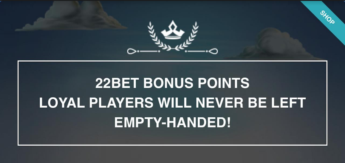 You can use your 22Bet points at the 22Bet shop to redeem free bets, free spins, and various exciting rewards. Note that you can use your free bet as a single bet with 1.80 odds at least or on accumulator bets of at least picks with the odds set at 1.40 minimum. Your 22Bet points can only be gotten once per day, and it cannot be exchanged for real money.