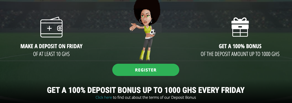 There is also a Friday reload bonus available for the players on the gambling platform. You need to make a deposit of 10 GHS on Fridays to claim this bonus. Upon making your deposit, you can win a 100% bonus up to 1000 GHS and add them to your wallet. However, follow all the wagering requirements to withdraw the bonus amount to your wallet.