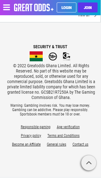 Visit the homepage of the GreatOdds Ghana sportsbook, and locate the Join now menu button.