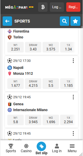 You can raise the stakes of your betting action by trying out the Megapari live betting feature. You can do this by launching an active match or going to the main menu and selecting the "Live" option. It is advised to understand how live betting works. Most importantly, the odds are randomly fluctuating in resonance with the changes that are taking place.0