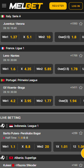 Regardless of whether an event has begun, users can still place a wager through live betting features. To place a live in-play wager, a player should select the Live option from Melbet's menu at the top of the screen. Every day, dozens of live sporting matches are covered by the website, and users can wager on the bulk of them in real-time. Additionally, the bookie also offers a thorough schedule of the activities coming later that day.