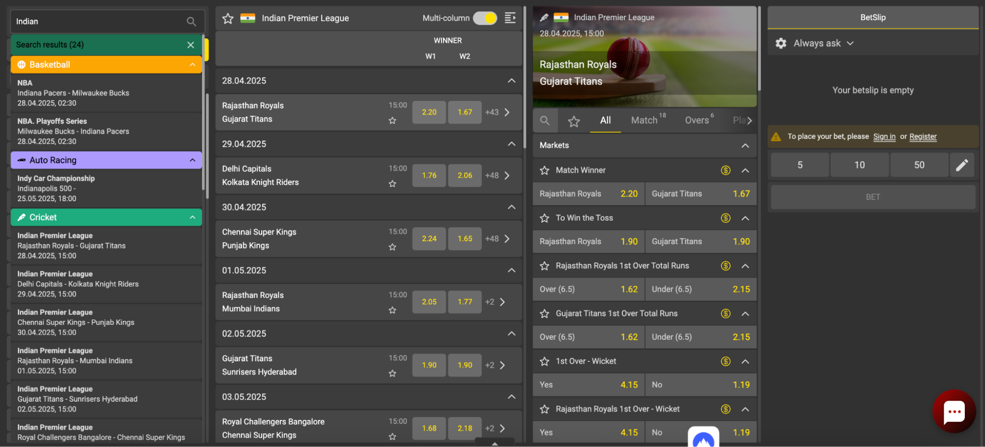 3. Take Advantage of Live Betting Opportunities: Cricket is a momentum-driven sport, and live betting lets you ride those waves in real time. See a sudden batting collapse? Odds will swing fast — and so can your potential payout. Use your match sense and watch for turning points like power plays, strategic timeouts, or weather interruptions to make sharp, timely bets.