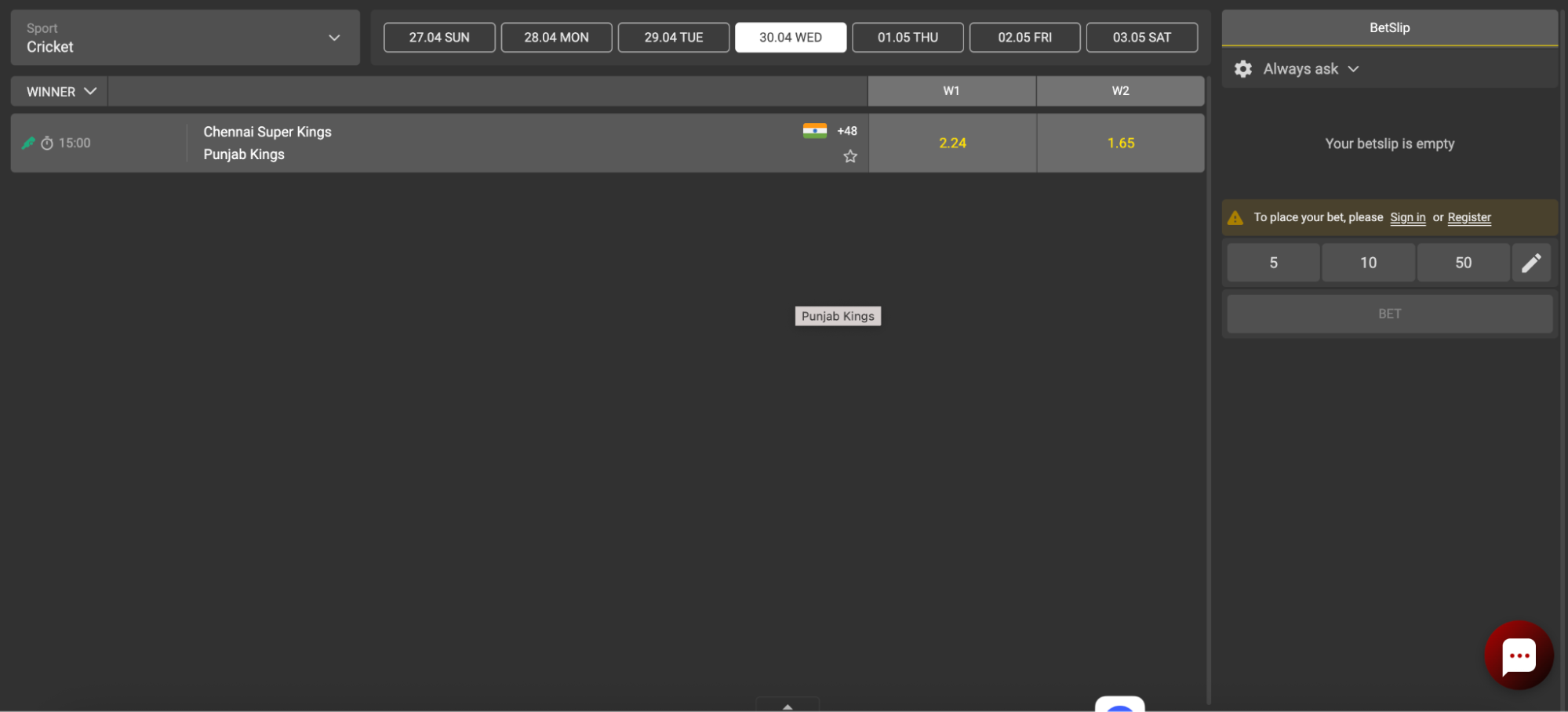• Player performance(runs, wickets): You guess about things like how many runs a batter will score or how many wickets a bowler will get with player performance bets. This is where you can really shine if you know your players well.