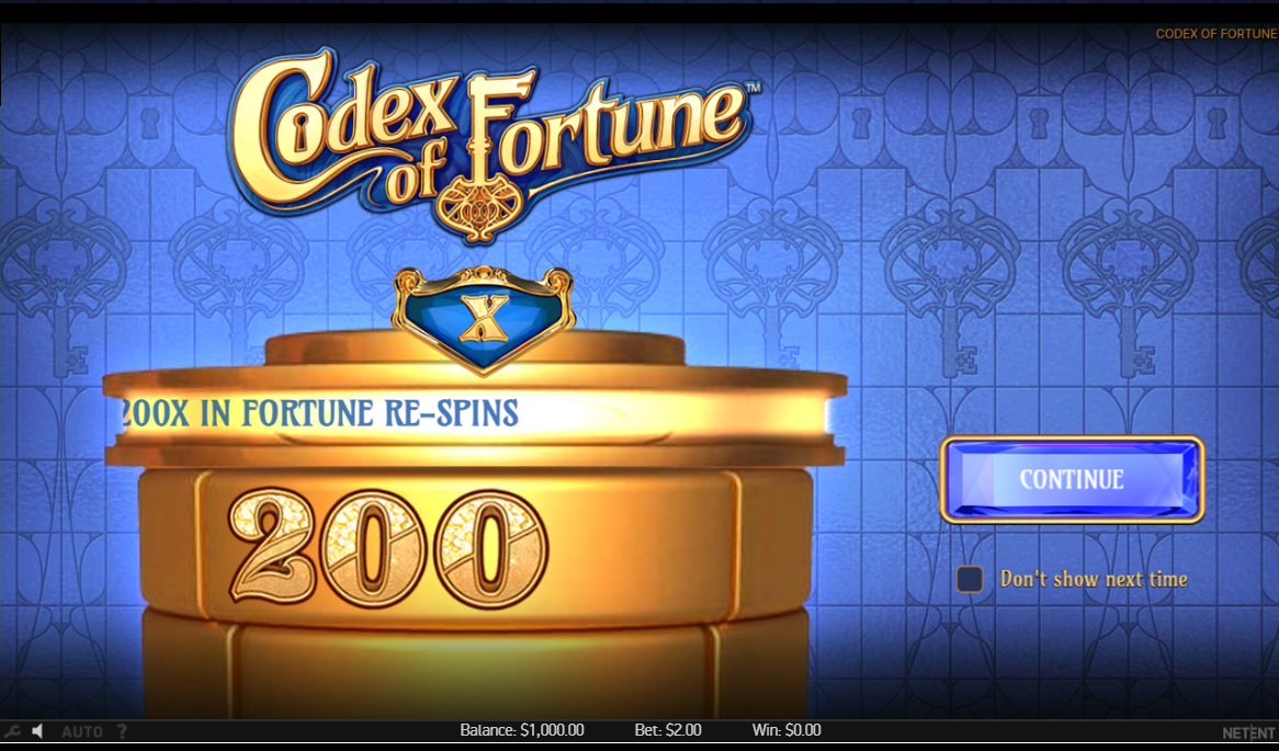 | Codex of Fortune | 5/40 | Filling the Fortune Win Meter Triggers Fortune Re-Spins. |