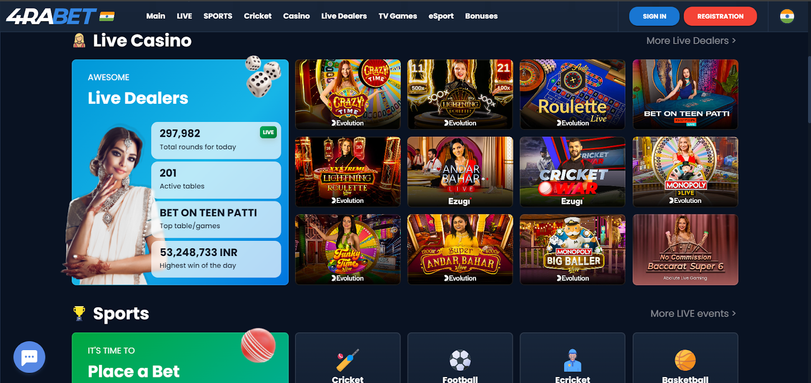 4RaBet is another bookmaker and casino in India that features amazing slot games for players. Players can check out the casino segment of the bookmaker and play slot games. The bookmaker features a 700% welcome bonus of up to 40000 INR for the new registrants. Therefore, for slots game real money, you can always register on 4RaBet and stake your funds on the slot games. Android and iOS apps are available for 4RaBet users, and they can download and play them. Users can also deposit and withdraw funds using their native currency and play.