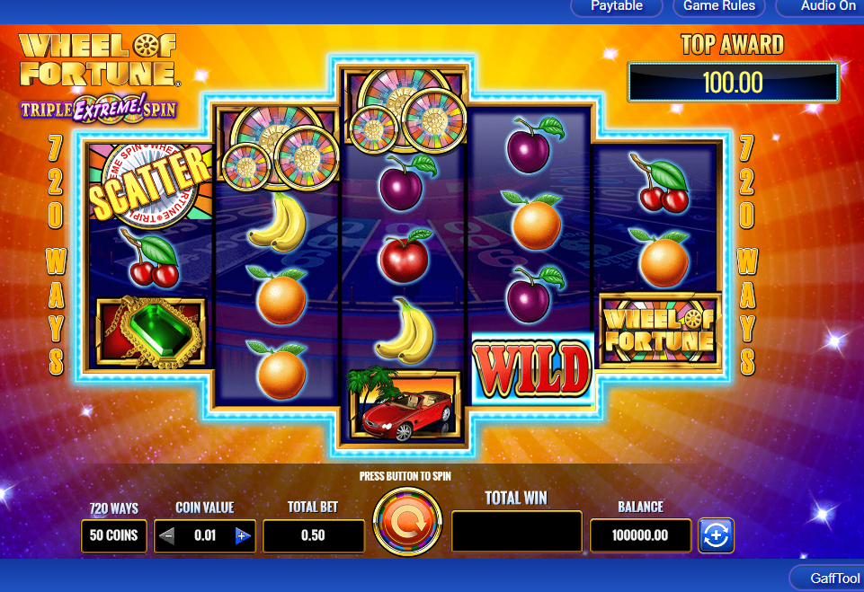 | Wheel of Fortune Triple Extreme Spin | 5/720 | 3 Triple Wheel Scatters unlocks the triple extreme spin bonus feature |