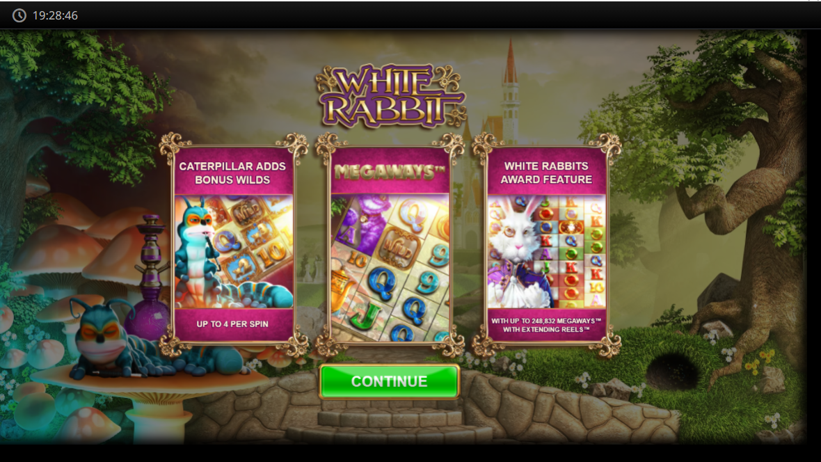 | White Rabbit Megaways | 5+/248,832 | Free Spins on the expanding reels offers up to 248,832 ways to win. |