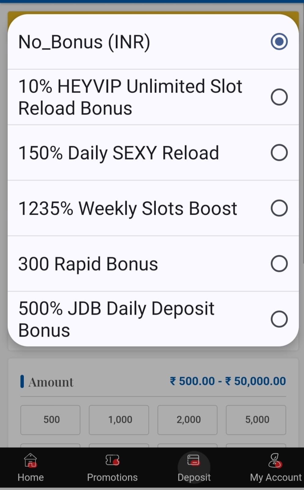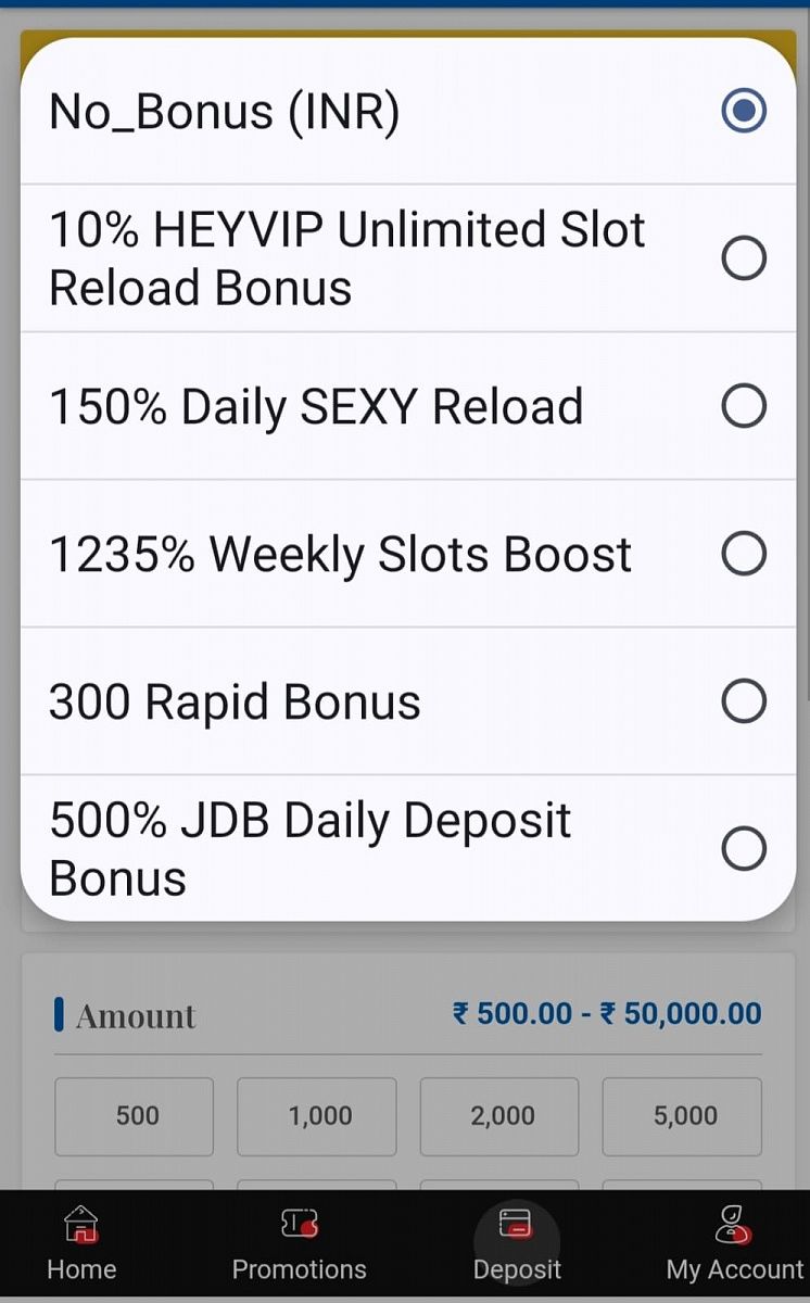 - A window will pop up with ‘Funds’ written on it. Inside, you will find a section called ‘Select Promotions’ that shows you the list of promotions available.