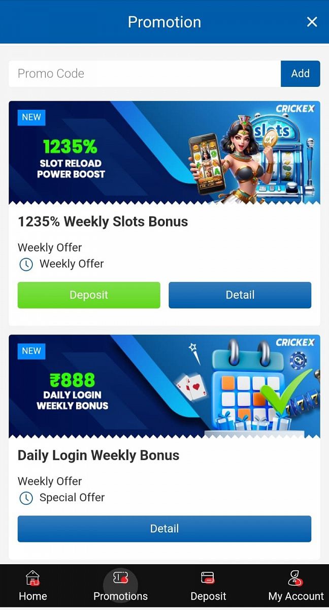 Some of the casino promo codes on Crickex provide no-deposit bonuses and these bonuses allow the users to try new games without risking their own money.