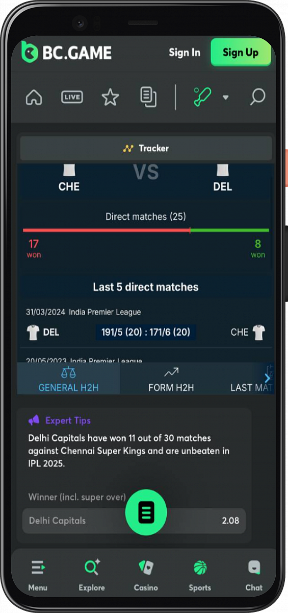 BC.Game is a relatively new bookmaker in the Indian market. It is more of a casino rather than a sports betting bookmaker. The major disadvantage of BC.Game is that it does not have any dedicated mobile app for iOS users. Players must add the site icon to the home screen to access the mobile version and bet on cricket games using the optimized application. BC.Game has a decent collection of odds and cricket markets.