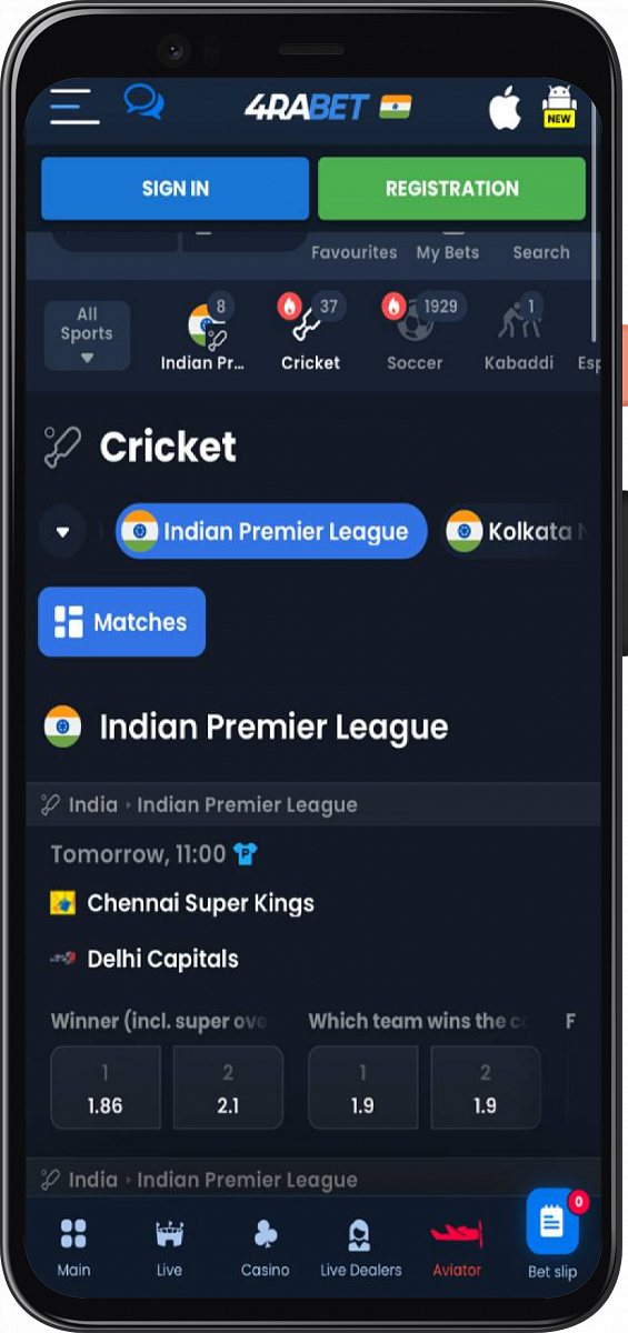 4rabet Sportsbook application is another competitive mobile app cricket platform for Indian punters. It not only provides multiple cricket betting events but also offers a welcome bonus for customers who are new to the site. With a user-friendly, navigable and colorful interface for the customers, the 4rabet sportsbook is always on the list for the best cricket betting performances.