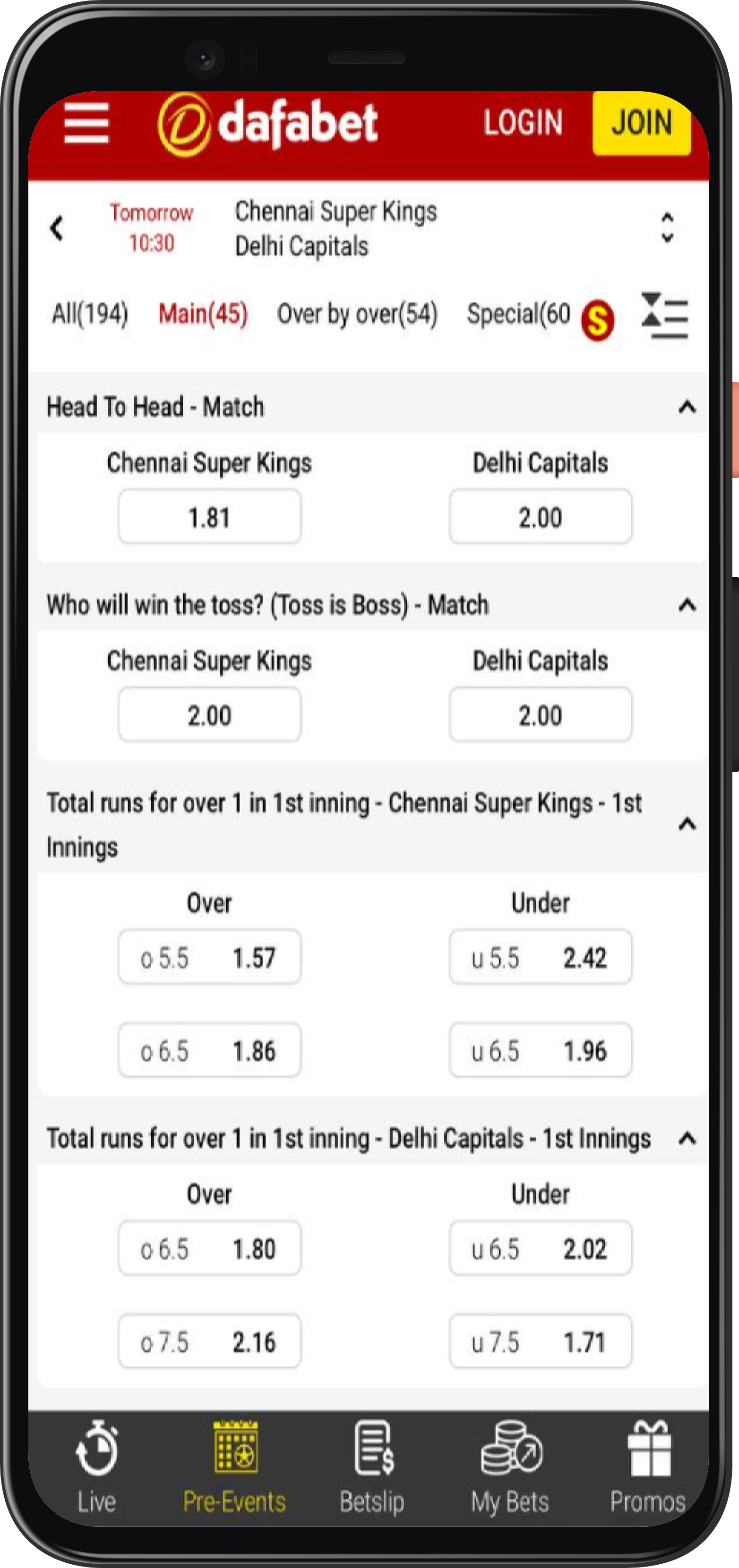 The major disadvantage of the site is that it looks a bit outdated. Overall, the Dafabet app features an intuitive and engaging interface for the players to wager on cricket games.