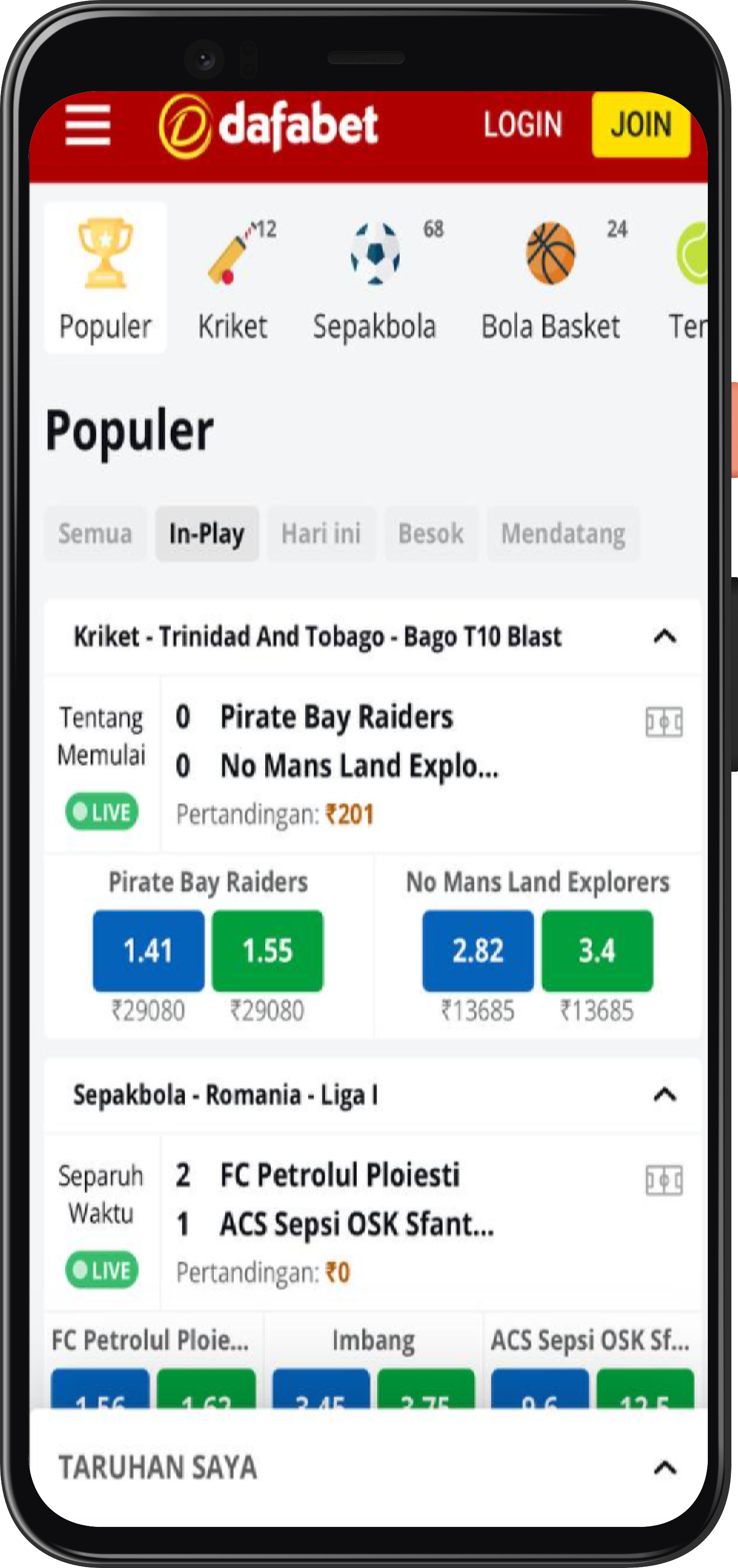 - The app has a fantastic selection of sports to bet on, featuring fan favorites like cricket, football, and tennis;